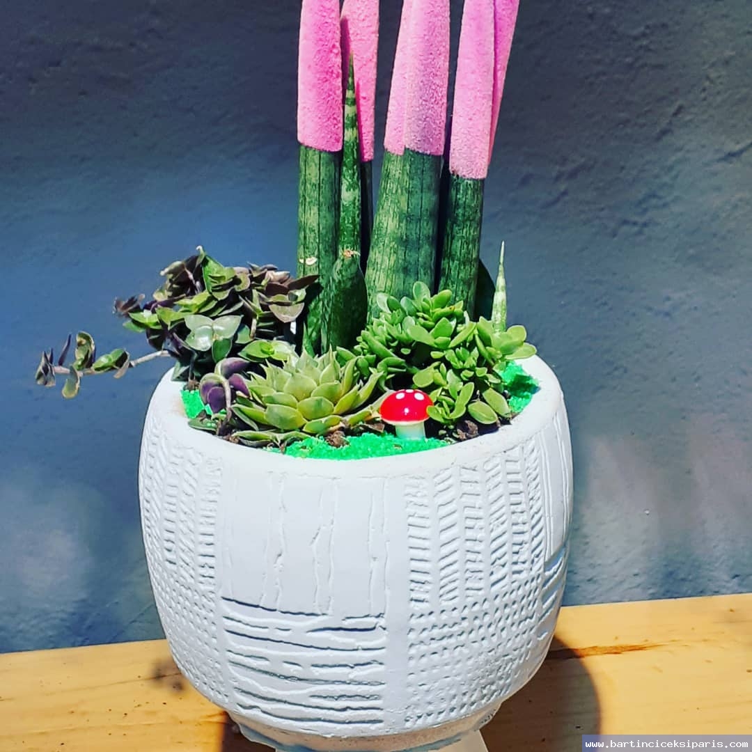 Taze Sukulentlerden Özenle Hazırlanmış Vazoda Şık Aranjman