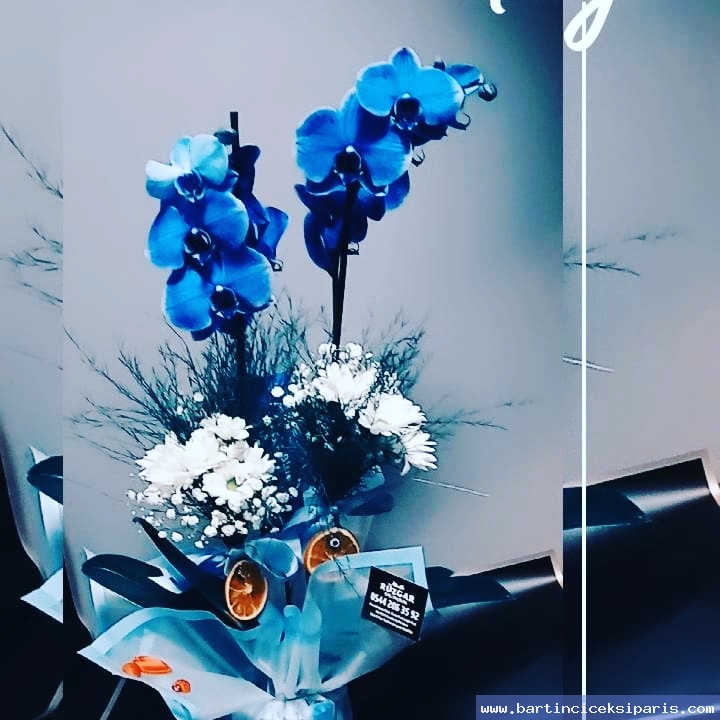 bartın merkezde sizler için özenle seçilen tomurcuk dolgun ve en güzel renkleri ile göze çarpan mor orkide altlarında vazoları ile elit süslemesi yapılarak sevdiklerinize gönderebileceğiniz çok şık bir hediyelik çiçektir not:çiçeklerde renkler bugünki renklere tabi olmaktadır farklı renk seçeneği sunulabilir