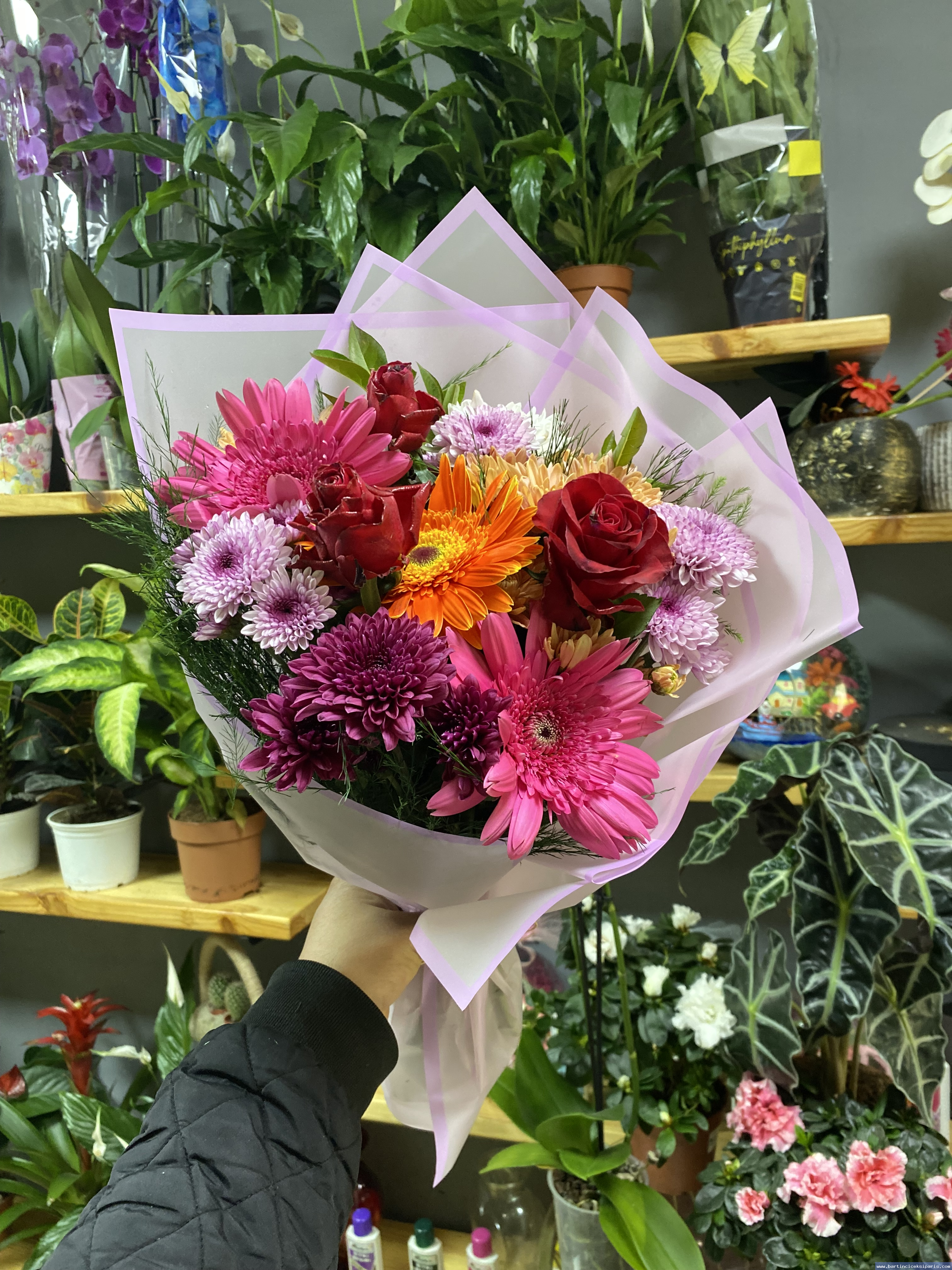 rengarenk papatyalardan oluşan sevdikjlerinize gönderebileceğiniz çok şık buket